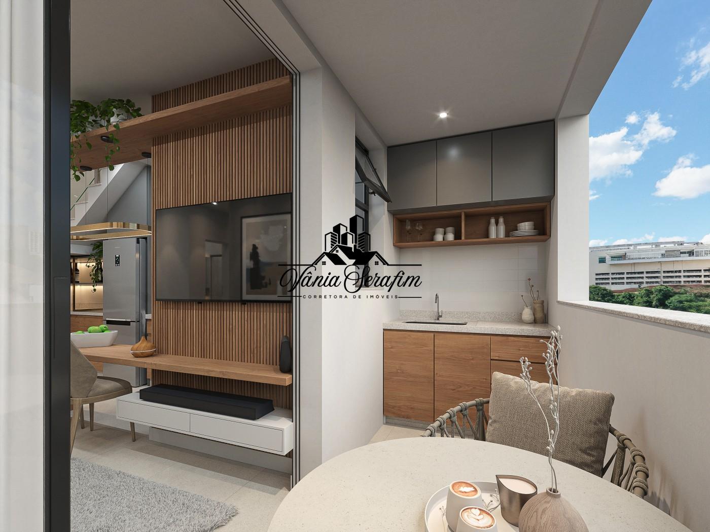 Os apartamentos tem 2 quartos, todos com suíte, banheiro social, uma boa sala com cozinha integrada, varanda gourmet e área de serviço.